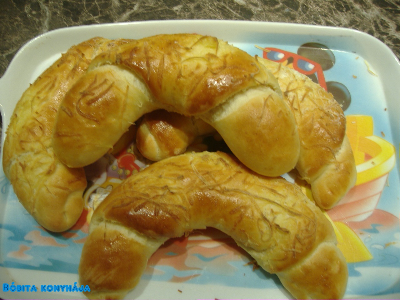 Minden hozzávalót a vaj és a sajt kivételével összekeverünk, amikor szépen összeállt beletesszük a vajat is és jó eldolgozzuk. Duplájára kelesztjük. 8 egyenő részre osztjuk és kisodorjuk háromszögalakúra. Sajttal megszórjuk, feltekerjük, kifli alakúra formázzuk. Egész tojással lekenjük, reszelt sajtot szórunk rá. Hagyjuk megkelni. 200 fokon gőzös sütőben (alulra egy kisebb tepsiben vizet teszek be) 20 percig sütjük.